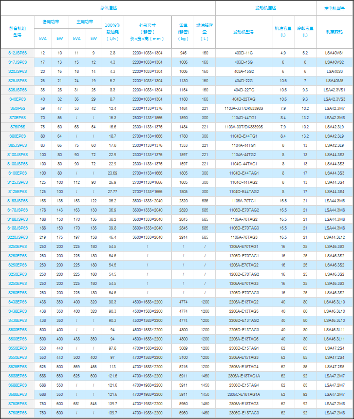 可選用斯坦福/利萊森瑪/美斯特等發(fā)電機(jī)品牌;
