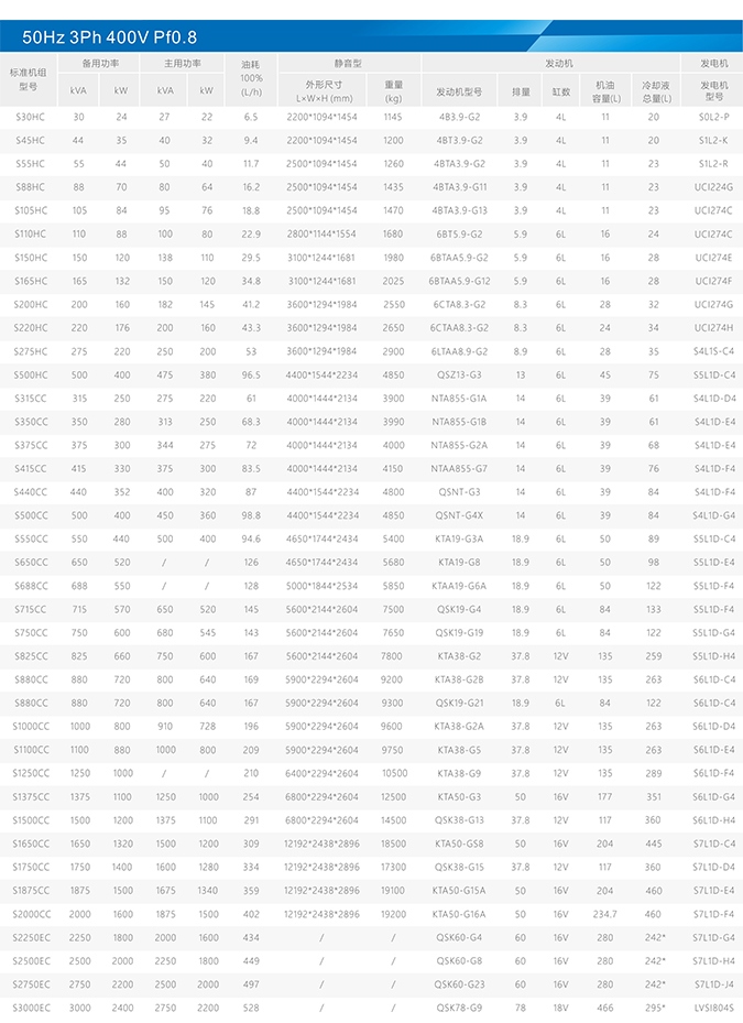 可選用斯坦福/利萊森瑪/美斯特等發(fā)電機品牌;